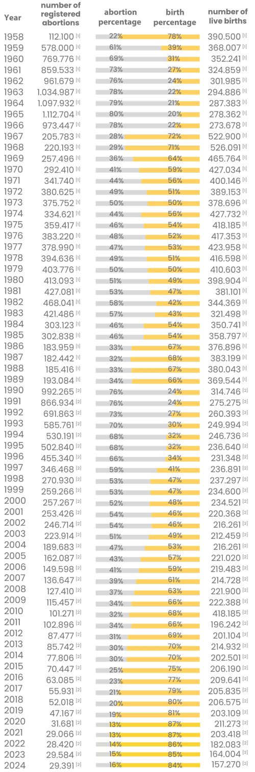 [3] National Institute of Statistics, 2024, Tempo-Online database, Population, online at http://statistici.insse.ro:8077/tempo-online/#/pages/tables/insse-table; the data are underreported: they do not include the number of abortions performed in private clinics or the number of chemical abortions.